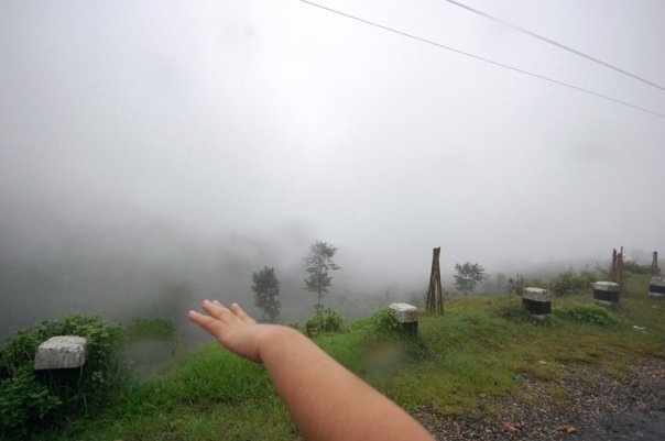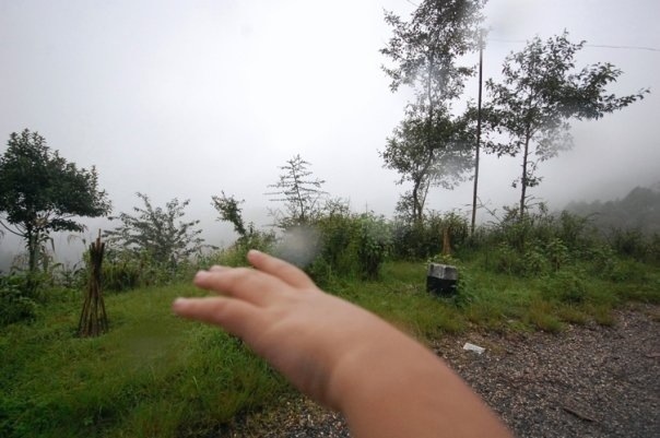 We were driving in Nepal and the clouds descended. These are a series of pictures of my daughter trying to catch a cloud!