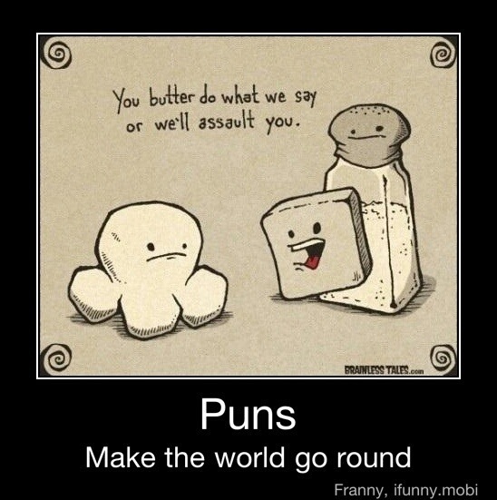 I have scoured the net across funny and not so funny sites, Pinterest, Facebook, Instagram and a host of other resources to find puns. I love puns, the word play and the ability to let your mind sink and let other people drown with you into a space where they either grin, smile, laugh out loud, wince, grunt, frown, throw up, fall ill or jump of a really tall building in slow motion!